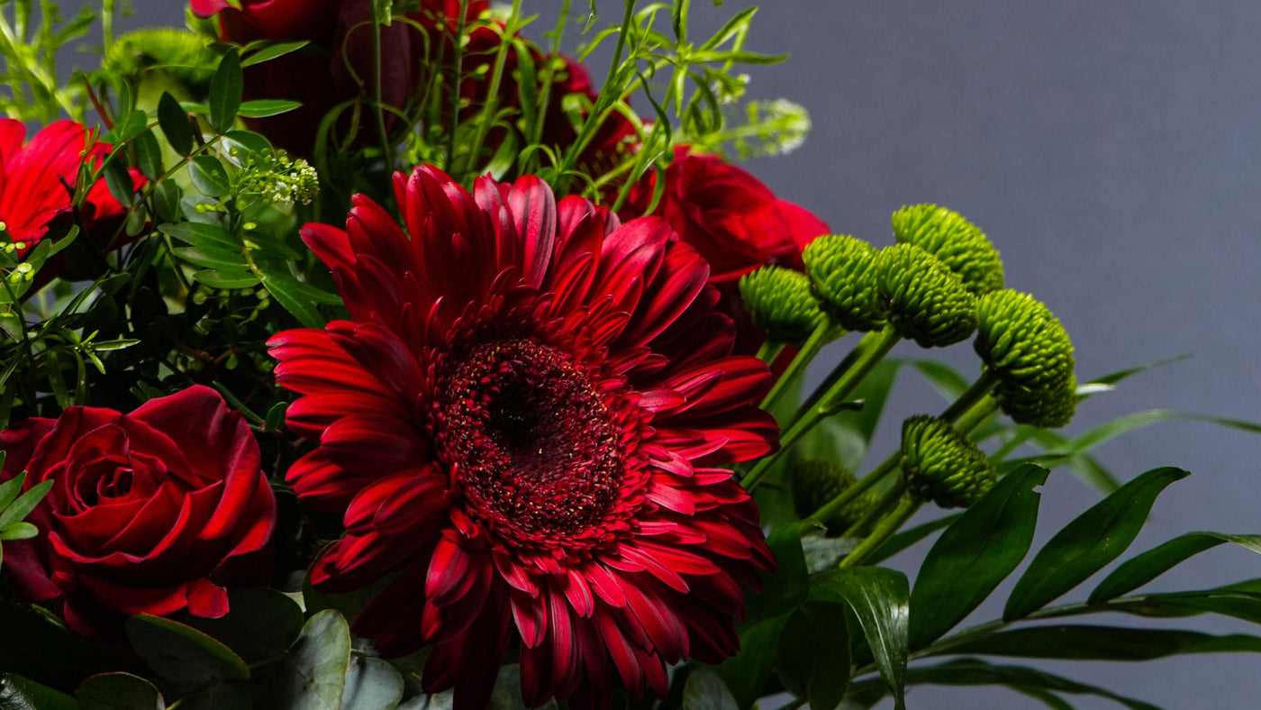 Ramo Gerbera Pasión: Rosas Rojas, Gerberas y Crisantemos